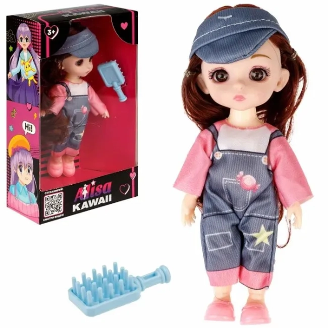 Кукла Alisa Kawaii mini 15,2 см с расчёской с кор темн вол в кор 12х20х5,5см