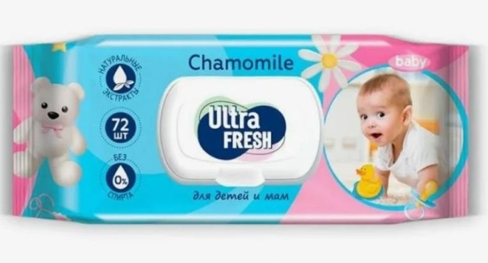 Ultra Fresh Влажные салфетки Baby для детей и мам с клапаном, 72 штуки в упаковке. Детские влажные салфетки Ultra Fresh Baby предназначены для заботливого очищения нежной кожи малыша и мамы. Смягчают кожу, придают ей ощущение свежести, бархатистости и комфорта. Незаменимы при смене подгузников, идеальны для прогулок! Витамин Е способствует заживлению маленьких ранок, поддерживает естественную защитную функцию кожи.
