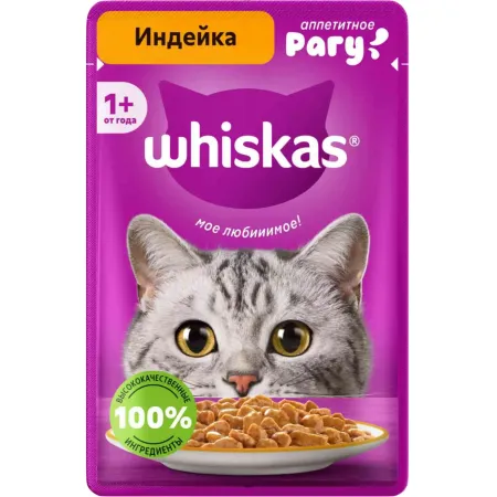 Корм консервированный полнорационный WHISKAS® для взрослых кошек рагу с добавлением индейки «Индейка».