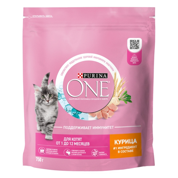 Корм для кошек Purina ONE® (ПУРИНА УАН) — полнорационный корм, разработанный ветеринарами и диетологами Purina специально для котят в возрасте от 1 до 12 месяцев. Корм также рекомендован беременным и кормящим кошкам. Корм Purina ONE® с курицей для котят 750 г — это: • КУРИЦА — #1 ингредиент в составе • Здоровое развитие жизненно важных функций организма благодаря особому составу корма, разработанному специально для ранней фазы жизни • Развитие мозга и зрения котёнка благодаря содержанию Омега-3