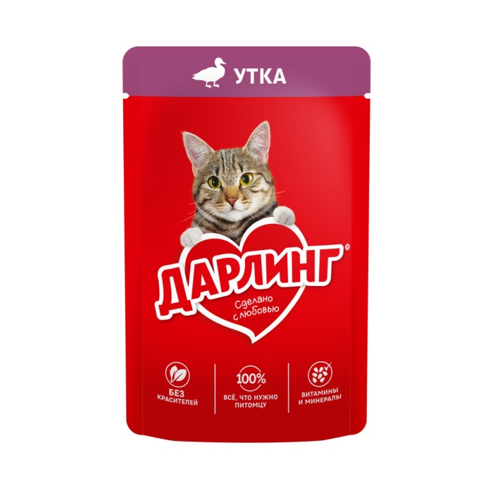 Корм ДАРЛИНГ для кошек – это сбалансированное питание, в котором содержится на 100% всё, что нужно кошке каждый день. Он сделан с любовью из качественных ингредиентов, а также содержит витамины и минералы, необходимые Вашей кошке, чтобы быть здоровой, активной и дарить радость Вашей семье.