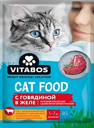 Корм для кошек Vitabos с говядиной кусочки в желе 85гр