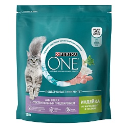 Корм для кошек Purina One сухой для чувствительных Индейка 750гр