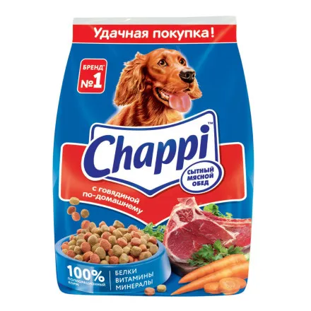 В Chappi есть все необходимые для собаки белки, жиры и углеводы, а также полезные витамины и минералы. Готовый рацион Chappi содержит натуральные и полезные ингредиенты - приправу из овощей и трав - морковь и люцерну. Рекомендуемые порции: 10 кг веса - 175 г/день; 25 кг веса - 350 г/день; 40 кг веса - 500 г/день;