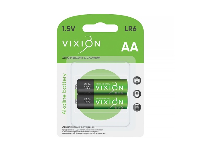 Алкалиновые батарейки Vixion LR6 подходят для питания энергоемких устройств, без подключения к электросети: мощных фонариков, детских игрушек, музыкальных плееров и колонок, фото/видеокамер, радиоприемников, геймпадов и других устройств с большим потреблением энергии. Батарейки относятся к щелочным элементам питания, именуются также «пальчиковыми». Они имеют более длительный срок хранения и службы, чем солевые батарейки. Алкалиновые батарейки устойчивы к перепадам температуры и высоким нагрузкам