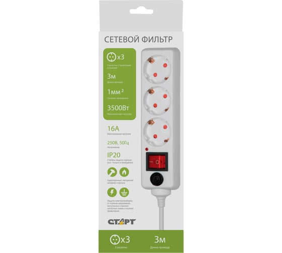 Фильтр сетевой Старт S 3х3 ZV (3роз 3м) белый