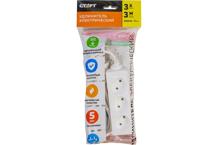 Фильтр сетевой Старт S 3х3 ZV (3роз 3м) белый