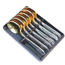 Набор кружек 6шт 320мл на бамбуковой подставке квадрат фарфор золото