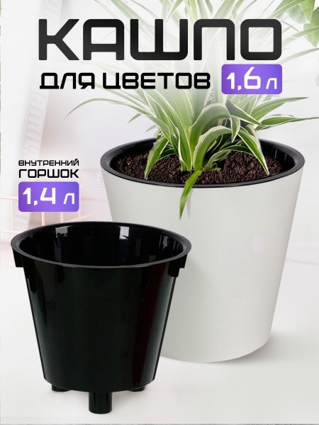 Кашпо/горшок для цветов 1,6/2л пластик в асс