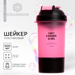 Шейкер 500мл спортивный с чашей д/протеина пластик