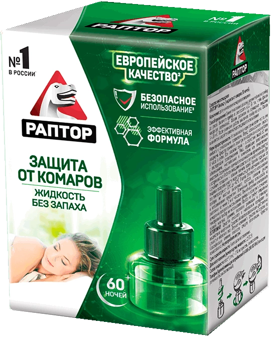Комплект Раптор прибор электрич+жидкость от комаров без запаха 30 ночей