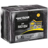 Губка Чистюля 4 XL Пенный эффект черные 4шт
