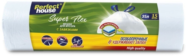 Прочные завязки, с помощью которых можно легко завязать пакет, предотвратив тем самым выпадение мусора и появление неприятного запаха.