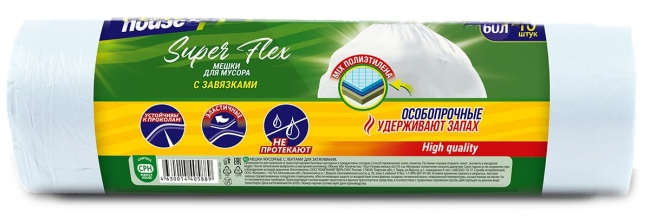 Имеют прочные завязки, с помощью которых можно легко завязать пакет, предотвратив тем самым выпадение мусора и появление неприятного запаха.