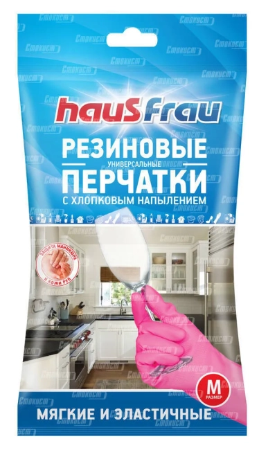 Хозяйственные резиновые перчатки Haus Frau изготовлены из резины с внутренним хлопковым покрытием, что способствует комфортному ношению. Они защищают руки от химических веществ, растворов, масел, грязи, при этом имеют высокую чувствительность пальцев и обеспечивают хороший захват предметов.
