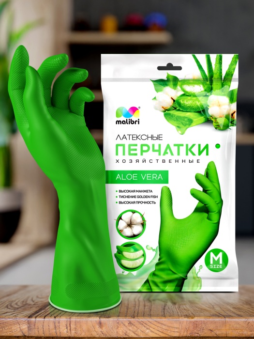 Перчатки латексные MALIBRI универсальные с хлопковым напылением с экстрактом АЛОЭ предназначены для защиты ваших рук в различных бытовых ситуациях. Перчатки надёжно защищают нежную кожу рук от прямого контакта с водой и от вредного воздействия бытовой химии. Благодаря нежному хлопковому напылению вашим рукам будет не только комфортно в перчатках, но вы также сможете их легкостью снимать и надевать. Внутреннее напыление с экстрактом АЛОЭ обладает антисептическим эффектом и защищает руки от раздра