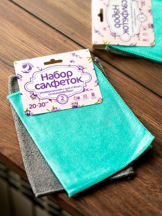 Набор салфеток из микрофибры Голубушка "Универсальная" + "Для стекол и зеркал" 20х30см, состоит из двух салфеток различного назначения. Салфетка "Универсальная" предназначена для сухой и влажной уборки любых поверхностей. Салфетка с классической текстурой микрофибры уже стала мировым стандартом - она идеальна для любых видов уборки: для влажной и для сухой. Салфетка без труда справляется с удалением пыли, грязи и жира. Благодаря наличию в составе полиамида мгновенно впитывает жидкость и влагу. Н