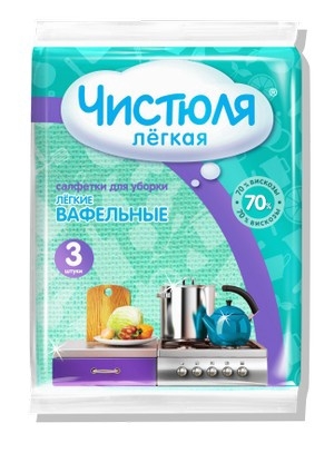 Вафельные вискозные салфетки Чистюля подходят для уборки любых поверхностей. Хорошее поглощение влаги. Небольшой размер: комфортность для нежной женской руки, быстрое высыхание.