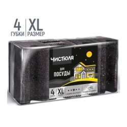 Губка Чистюля 4 XL Защита маникюра черные 4шт