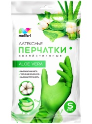 Перчатки Malibri латексные универсальные с хлопковым напылением с экстрактом Алоэ размер S
