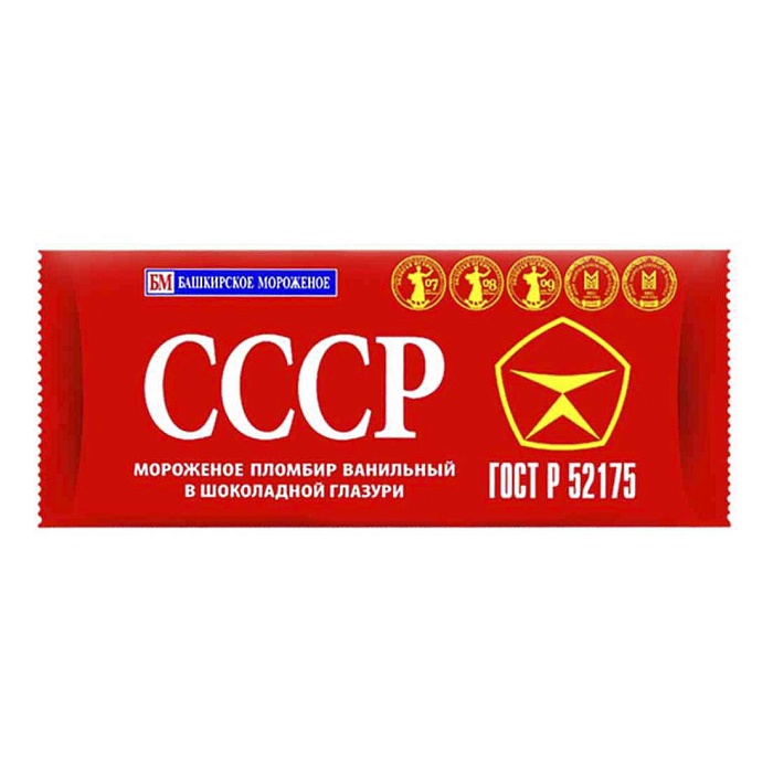 Традиционный, созданный по советской рецептуре ванильный пломбир в шоколадной глазури ,12% жирности. Рожден в СССР!