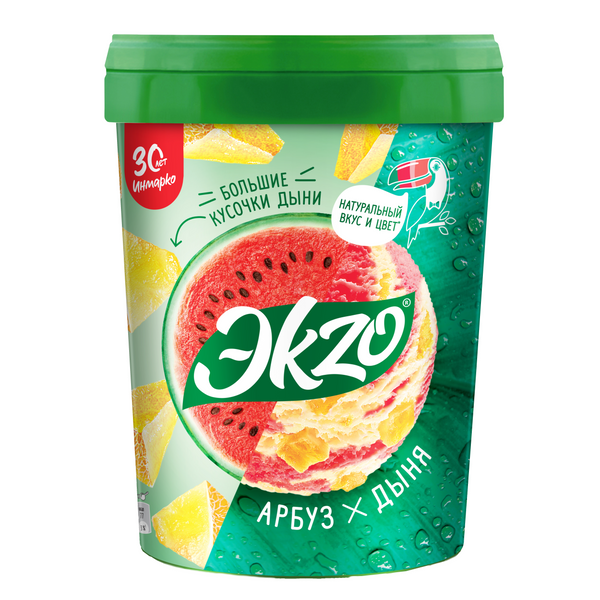 Состав: вода, сахар, кусочки дыни, молоко сухое, сироп глюкозы, концентрированный сок дыни, сыворотка сухая, мальтодекстрин, масло сливочное (B) или молочный жир (F), тыквенное пюре, стабилизаторы (Е1442, камедь рожкового дерева, гуаровая камедь, камедь тары, каррагинан) эмульгатор моно- и диглицериды жирных кислот, фруктоза, регулятор кислотности лимонная кислота, красители (кармин, каротин, аннато), концентрированный сок арбуза, ароматизаторы (дыня, арбуз), консервант E211.