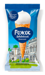 Мороженое (молоко цельное, сливки питьевые м.д.ж. 40%, молоко цельное сгущенное с сахаром м.д.ж. 8,5% (молоко цельное, молоко обезжиренное, сахар (сахароза), сахар молочный пищевой (лактоза)), сахар, сухой глюкозный сироп, вкусоароматическая паста (сироп глюкозы, сахар, экстракт ванили, стручки ванили молотые, вода питьевая, загуститель – пектины (цитрусовый), соль пищевая), стабилизаторы (камедь рожкового дерева, гуаровая камедь), эмульгатор - моно и – диглицериды жирных ки