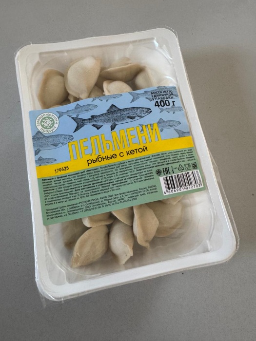Тесто, мука пшеничная вс, вода питьевая , соль птщевая, фарш лососевых рыб (кета)