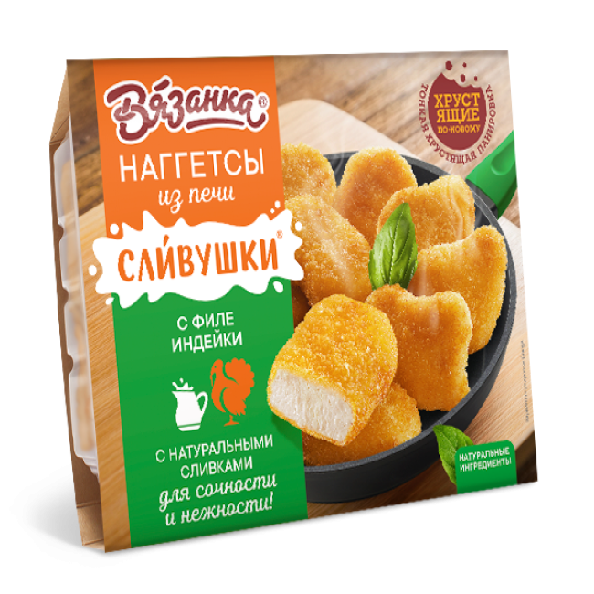 Наггетсы "Сливушки" с филе индейки - это особенно СОЧНОЕ И НЕЖНОЕ ФИЛЕ КУРОЧКИ и ИНДЕЙКИ за счет добавления НАТУРАЛЬНЫХ СЛИВОК.