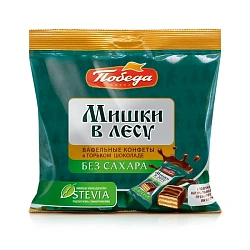 Конфеты Победа Мишки в лесу вафельные в горьком шоколаде б/сахара 150гр