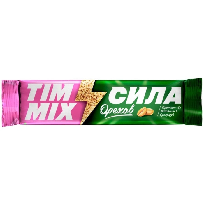 дробленое обжаренное зерно арахиса, ядро подсолнечника обжаренное, глюкозно-фруктозный сироп, семена кунжута обжаренные, дробленое ядро грецкого ореха, дробленое обжаренное ядро фундука, сахар, патока высокосахаренная, эмульгатор – сорбитовый сироп, маргарин (рафинированные дезодорированные растительные масла в натуральном и модифицированном виде, в том числе соевое; вода, эмульгатор моно- и диглицериды жирных кислот, соль, регулятор кислотности лимонная кислота, ароматизатор, краситель – бета-к