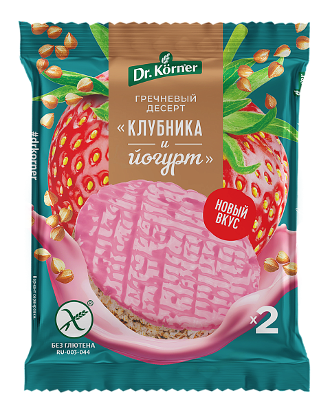 Десерт гречневый DR KORNER Клубника и йогурт – лакомство на основе гречневой крупы с нежными нотами клубники и йогурта. Гречневая основа придает десерту особую текстуру, а ягодно‑йогуртовые оттенки создают сбалансированный вкус. Источник витаминов группы B и микроэлементов, может стать легким перекусом в течение дня