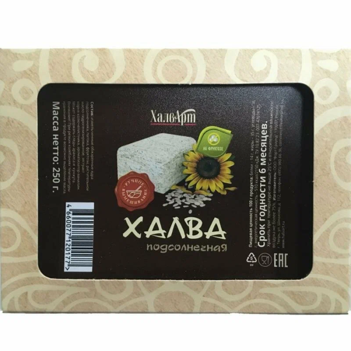 Халва подсолнечная на фруктозе этотрадиционное сладкое лакомство, приготовленное из натуральных ингредиентов. В составе отсутствуют синтетические вкусо-ароматические добавки, а сахар-песок заменен на фруктозу. Аккуратные брусочки халвы упакованы в коробку с вкусным дизайном