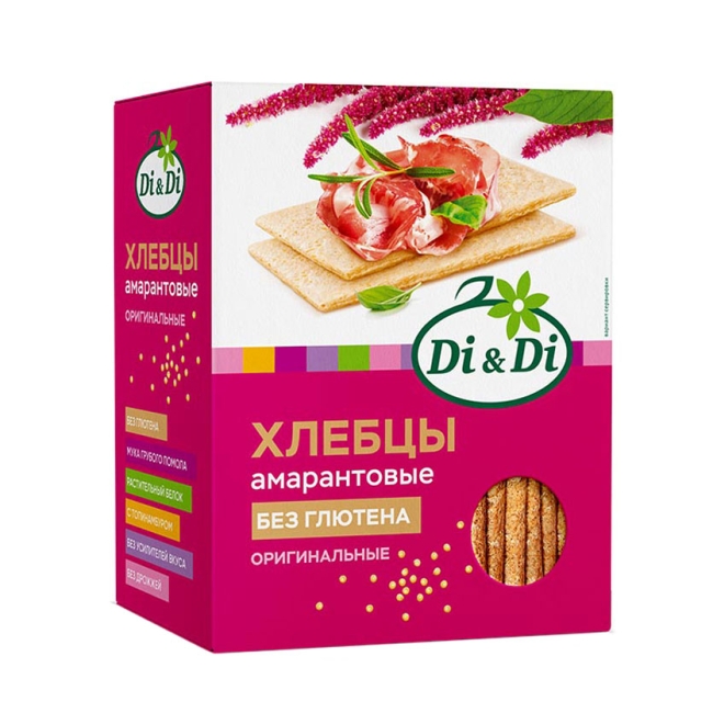 Амарантовые хлебцы от "Di&Di" - станут прекрасной альтернативой хлебу, благодаря полному отсутствию сахара, фруктозы, глютена и дрожжей. Амарантовая мука в составе хлебцев относится к группе диетических продуктов. Основное ценное свойство-полное отсутствие глютена, минимум клейковины, большое количество пищевых волокон и белка. Присутствующий в составе топинамбур полезен для пищеварительной системы и богат большим содержанием кальция, обеспечивает рост полезной микрофлоры кишечника и способствуе