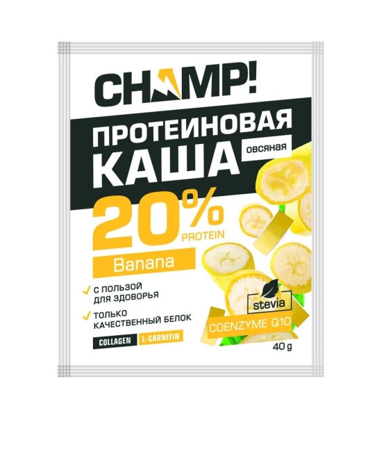 Хлопья овсяные, белки молока (молоко сухое цельное, сывороточный белок), изолят соевого белка, фруктоза, семена льна, крахмал картофельный, банан, коллаген гидролизованный, L-карнитина тартрат, коэнзим Q10, заменитель сливок на растительной основе (кукурузный сироп, масло растительное, молочный белок), подсластитель – стевиозид (экстракт листьев стевии), соль, ароматизаторы