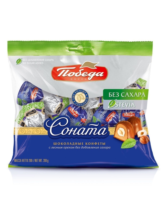 Шоколадные конфеты с ореховыми начинками называются «пралине» в честь французского герцога Сезара дю Плесси Пралин. Рецепт был создан в 18 веке, и сегодня его знают во всем мире. Конфета "Соната" - вкуснейший сливочный шоколад, нежная начинка пралине и воздушная хрустящая вафля.