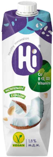 Кокосовый напиток Hi - это растительное молоко с мякотью спелого кокоса. Растительный напиток кокосовый с низким содержанием углеводов придаст экзотическую нотку любимому смузи, подчеркнет вкус кофе и отлично подойдет для приготовления выпечки.
