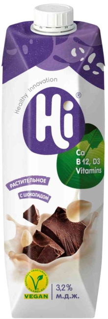 Шоколадный напиток "Hi" обогащен витаминами D3, B12 и кальцием, не содержит лактозы, ГМО, красителей и антибиотиков.