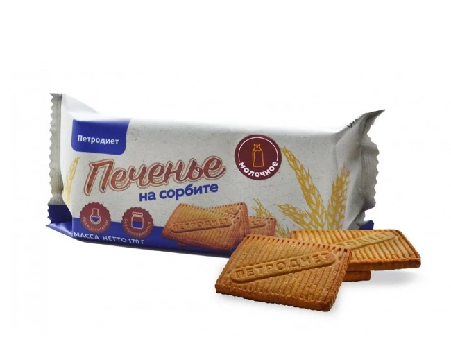 Печенье молочное на сорбите. Сорбит - натуральный сахарозаменитель, который обладает низким гликемическим индексом, не вызывает резкого повышения уровня глюкозы в крови.