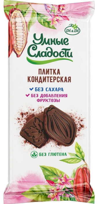"Плитка кондитерская ""Умные сладости"" шоколадная, обладает насыщенным вкусом темного шоколада. Присутствующий в составе топинамбур полезен для пищеварительной системы и богат большим содержанием кальция. Без сахара и фруктозы.