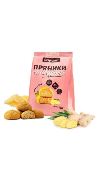 Состав: мука пшеничная 1/с, фруктоза, масло подсолнечное рафинированное дезодорированное, продукты натуральные растительные из волокна пшеницы, разрыхлители: карбонаты аммония, гидрокарбонат натрия; смесь пряностей (корица, гвоздика, перец душистый, перец черный, мускатный орех, имбирь, кардамон), экстракт имбиря, ароматизатор ванилин.