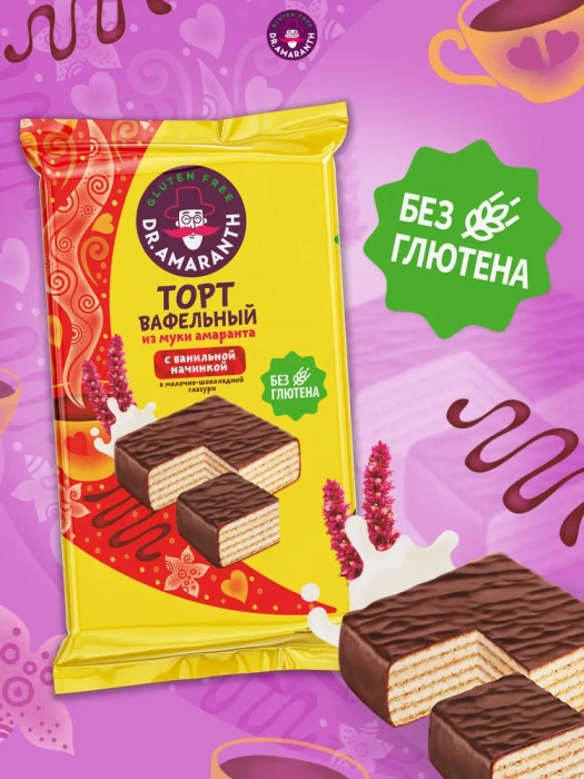 Вафельный торт "DR.AMARANTH" – это великолепный десерт, который станет идеальным дополнением к вашему чаепитию или перекусу в любое время дня. Вафли "DR.AMARANTH" являются хорошей альтернативой традиционным сладким изделиям, предлагая не только вкус, но и заботу о вашем здоровье. Состав этого продукта включает только качественные ингредиенты, что гарантирует отменный вкус и высокую питательную ценность.