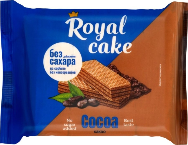 Вафли ROYAL CAKE с какао, на сорбите – вкусное лакомство, которое приготовлено без добавления сахара. Вместо него используется натуральный подсластитель сорбит. Вафли быстро утоляют голод и заряжают энергией, подходят для перекуса и в качестве дополнения к чаю или кофе.