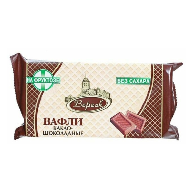 Вафли содержат фруктозу натуральный природный сахар, они будут особенно полезны людям, страдающих сахарным диабетом. Нежные и хрустящие вафли Вереск на фруктозе подарят вам минуты истинного наслаждения. За счет применения фруктозы, вафли содержат меньше калорий, чем вафли на сахаре.