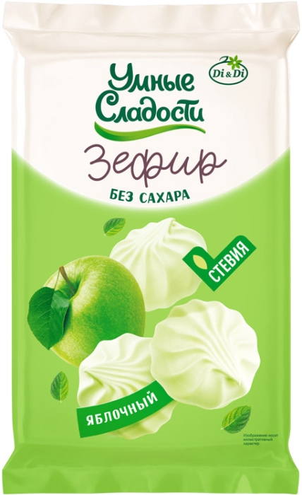 подсластитель - мальтит, патока крахмальная карамельная, пюре яблочное, желирующий агент -пектин, белок яичный, регулятор кислотности - кислота молочная, влагоудерживающий агент - лактат натрия, ароматизатор "Яблоко", консервант сорбат калия, подсластитель стевиозид, краситель хлорофилл.