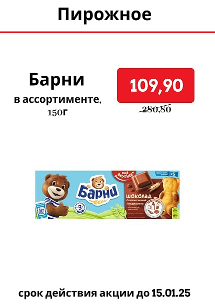 Пирожное Большевик Медвежонок Барни, в ассортименте, 150г