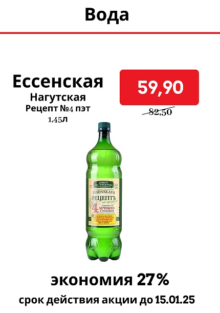 Вода Ессенская Нагутская Рецепт №4 пэт 1,45л
