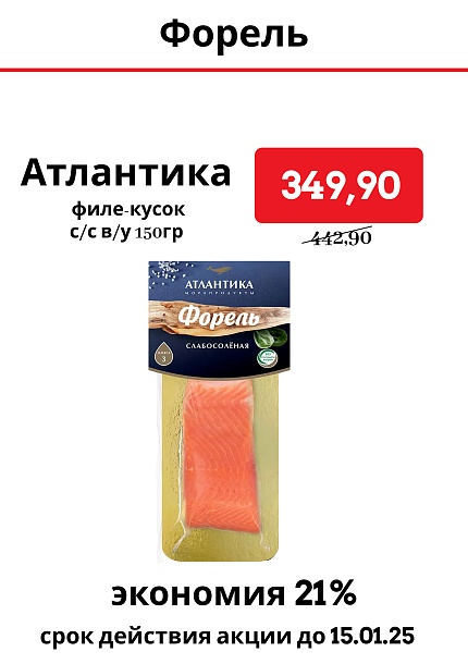 Форель Атлантика филе-кусок с/с в/у 150гр