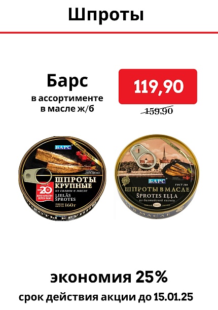 Шпроты Барс из балтийской кильки в масле ж/б ключ 160гр