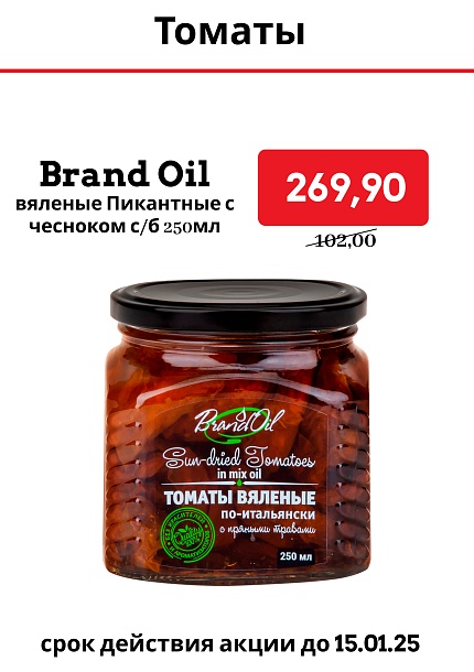 Томаты Brand Oil вяленые по-Итальянски с пряными травами с/б 250мл